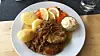 POTETBALL: Skikkelig lokal variant med stekt potetball, pølser og kålrabistappe.