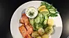 DAGENS FISK: Ørret med rømmedressing og frisk agurk.