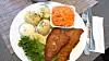 MYE PÅ MENYEN: Også flere fiskevalg, blant annet sprøstekt rødspette med poteter og råkost.