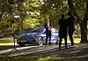 «DEN ULTIMATE INDUSTRIEN»: Kongsberg-kollegene Christer Kobbevik Oldeide og Ola Flåskjer (t.v.) ved en modell av bilen de bygget som del av Revolve-teamet på NTNU.
