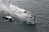 BÅT I BRANN: Nederlandske myndigheter opplyser at brannen på det japanskeeide bilfraktskipet Fremantle Highway nå er slukket.Foto: NTB-AP