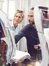 SISTE HÅND PÅ VERKET: – Vi skal ikke miste noe BMW-identitet i arbeidet med utviklingen av disse bilene, sier BMWs designsjef Kai Langer (t.h.).Foto: BMW