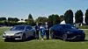 KINA OG ITALIA: BYD-sjef Stella Li mellom to Inter-representanter – flankert av Denza Z9 GT og BYD Sealion 7.