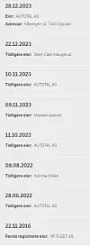 EIERHISTORIKK: Historikken over eiere viser hvor ofte Autotal har måttet ta tilbake bilen.Faksimile