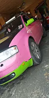 Bilen er imidlertid fikset nå. Elene Solli Smedvik har skiftet mange deler, og lakkert den om fra svart til delvis rosa.