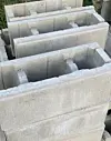 BETONGBLOKK: Etter hendelsen tok bilføreren bilde av disse betongblokkene, som mannen i 60-årene hadde utenfor huset sitt. Det var en slik stein som ble kastet mot bilen.Foto: PRIVAT