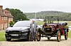 VANSKELIG VALG? Ford-lojalisten Harold Baggott mellom en Mustang Mach-E og Model T.Foto: MATT ALEXANDER, PA WIRE/FORD MOTOR