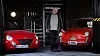 SMÅGODT: Redaktør Jon Winding-Sørensen mellom to av sine kjære i garasjen hos arbeidsgiveren Bilforlaget i Oslo, en Daihatsu Copen (t.v.) og en Fiat 500 Bianchina, henholdsvis 339 og 302 cm lange.Foto: NIKOLAS GOGSTAD