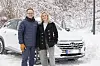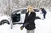 deres nye elbil. Ekteparet vil gjerne vise oss bilen. Men først må all snøen
