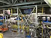 Her settes batteriet på plass. Det nymalte, gule stativet viser at det er oppgradert og nytt – sterkt nok til å bære kommende elbiler.