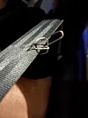 stanset på svenskegrensen med denne skruen festet i sikkerhetsbeltet.