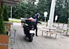 parkeringsselskapet P-Service viser motorsyklistens parkering på McDonald's på