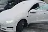 HELT NEDSNØDD: Slik så Teslaen ut da politiet stoppet sjåføren.