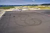 Rundt og rundt i en presis sløyfe, i fugleperspektiv ser du allerede dekksporene på den nylagte asfalten. Med den typen presisjon skal selvkjørende biler gjøre trafikken tryggere.