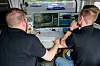 De begynner å rulle, nøyaktig langs sporet av fersk gummi som er slitt etter utallige runder som denne. Fra et mobilt kontrollrom i en varebil langs kanten av plassen kan kontrollørene via en computer registrere – og regulere – styringsvinkel, feilmarginen fra den definerte ruten, bilenes hastighet i km/t og bremsekraften.