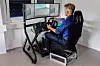 Fra et rom i en brakke ved en åpen plass der kjegler var satt opp for å markere parkeringssonene, kunne vi styre bilen via skjerm med et ratt og bremse- og gasspedal. Bilen beveget seg i maksimalt 10 km/t, og reagerte helt umiddelbart på retningsforandringer og fartsendringer.
