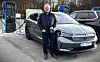 NESTEN BARE FORNØYD: Knut Nøglegaard og hans Skoda Enyaq.Privat foto