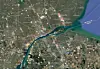 NÆRT, MEN FJERNT: Dette kartutsnittet viser det smått absurde i situasjonen: Den nederste Stellantis-markeringen er i Windsor og Canada, de øverste i Detroit og USA. Det har vært vanlig å samarbeide tett over grenseelven.Illustrasjon: GOOGLE MAPS
