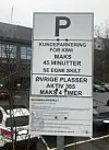 er lov å parkere i 45 minutter mens man er kunde hos Kiwi.