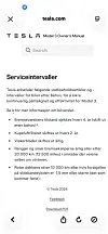 Serviceanbefalingene fra Tesla.Skjermdump, Teslas brukerhåndbok