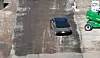 Bildene kommer fra et klipp filmet med drone over Teslas Gigafactory i Texas og viser bruk av bilens firehjulsstyring.