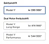 - Tesla Model Y Long Range AWD: gammel pris 490.878 kr, ny pris