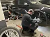 BREMSER: Her er det en Model Y som trenger nye bremseskiver, som er en av flere tjenester som kan gjøres uten at bilen må inn på verksted.