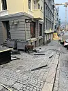 SLIK SÅ DET UT ETTERPÅ: Bilen kjørte i stor hastighet på fortauet nedover Torggaten og videre inn på Torgallmenningen, hvor den stanset etter kollisjon med Narvesen-bygget.Foto: VEST POLITIDISTRIKT