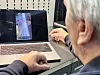Han spoler fram og tilbake i filmen noen ganger før han fortsetter.
