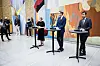 ENIGE: Kari Elisabeth Kaski (SV), Eigil Knutsen (Ap) og Geir Pollestad (Sp) i Stortinget etter forhandlingene om revidert nasjonalbudsjett.Foto: PETER MYDSKE/STORTINGET