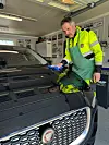 – Jeg burde gjort det selv, men har skrekkhistorier når det gjelder dekk- og hjulskifte på elbiler. Derfor overlater jeg det til et verksted. Dekkene oppbevarer jeg hjemme. Jeg må ha skikkelige dekk, skikkelige merkedekk. Du skal ikke spare penger på dekk. Og jeg har lav terskel når det gjelder bytte av dem. Jeg bruker piggdekk. Jaguaren er firehjulstrekker med god klaring. Den er ekstremt stabil ved vinterkjøring. Jeg har en kronglete kjørevei til og fra jobb. Jeg føler likevel aldri utrygghet. Men det er helt nødvendig med piggdekk. De jeg har nå, har gått to vintre. Piggdekk slites fortere og holder i en eller to vintre.