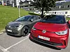 NY FARGE: Nye ID.3 kan velges i sju ulike farger. Den olivengrønne (t.v) er helt ny, og har også 20 toms felger. Samtlige modeller har svart tak.