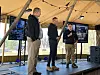 SUPERBRUKERE: Ford-sjefen Per Gunnar Berg (i midten) hadde hentet over Joe fra New York (t.v.) og Jace fra Ohio – som begge har lang erfaring med F-150-Lighting. Joe kjører blant annet ofte med en 12 meter lang campingvogn på slep.