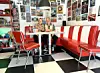 – Da for å hente en splitter ny såkalt diner-innredning i 1950-talls-stil. Kronespillet, som også er en del av innredningen, fikk vi kjøpe til fordelaktig pris. Når vi ser det helhetlige resultatet, tenker vi at garasjesommeren absolutt var verd innsatsen.