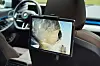 OPPHENGT: Et nettbrett kan gjøre nytte som kino, med feste i stolryggen.Foto: BMW