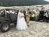 SANDKASSE: Mads Zimmermann har holdt på med terrengkjøring i flere tiår – og overtalte bruden Mariann Eikelia til å feire bryllupet i støvete omgivelser.Foto: PRIVAT