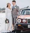 TREENIGHET: Matilde og Markus Berntsen blinket ut britisk bil som bryllupsfølge.Foto: SILJEANDREASSEN.NO