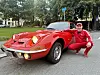 RØDHETTE OG ULVEN: Robin Heika og Maria Lien Bjørnsen stiller på treff med leppestiftrød Nissan 370Z, røde sko, rød veske og mer.