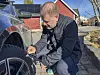 MYK: Jan Harry Svendsen fra NAF påpeker at gummien i testdekket er særdeles myk.Foto: JON TERJE HELLGREN PEDERSEN