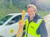 FRANSKE TILSTANDER: Lengst i test og lengst på asjetten. Testsjåfør Øivind Monn-Iversen feirer med en baguette etter avsluttet tur med Renault Scenic E-Tech Electric.Foto: JON TERJE HELLGREN HANSEN