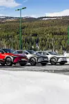 BREDT UTVALG: Toyota tilbyr firehjulsdrift i de fleste klasser, også i den ekstreme – eksemplifisert ved GR Yaris (t.v). Videre fra venstre: Yaris Cross, RAV4 og Corolla Cross.