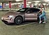 GARASJEPARTY: Monica Tang i Oslo valgte nyansen «frozen berry» da hun handlet Porsche Taycan.Foto: PRIVAT
