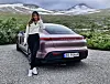 FJELLREVEN: Bilentusiast Monica Tang ønsket en Porsche Taycan i en farge som ikke forsvinner for mye i landskapet.Foto: PRIVAT