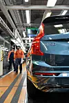 PUNKTUM FINALE: Her triller Volvos aller siste dieselbil av samlebåndet i Torslanda tirsdag.Foto: VOLVO CARS