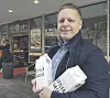 PAPPGRÜNDER: Bernt Rognlien med to pappkartonger spylevæske i armkroken.
