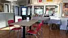 NYTT INTERIØR: Aksdal Veikro er pusset opp i litt amerikansk dinerstil, med 50-tallsstoler og gamle filmplakater på veggene.