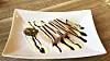 Sjokoladepuddingen er også hjemmelaget, og den er luftig i konsistensen og kommer med både vanilje- og sjokoladesaus i et lekkert stripemønster. Den er slett ikke så verst.