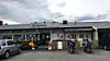 Ved bensinpumpe og matbutikk. Trangt og tett lokale. Litt vanskelig å orientere seg rundt en trapp foran disken. Tung stekeos gir følelse av gatekjøkken.
