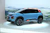 CITROËN AIRCROSS: Citroën C3 Aircross er foreløpig en konsept-bil, men produksjonsmodellen blir helt lik og vise på Frankfurt-utstillingen til høsten. Designmessig har den hentet mange elementer, blant annet luftputene på siden og fronten fra Citroën Cactus.