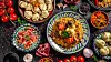 USBEKISK FEST: Tradisjonelt festbord i Usbekistan, med retter laget i anledning nyttårsfeiring.Foto: ZUFAE KAMILOV